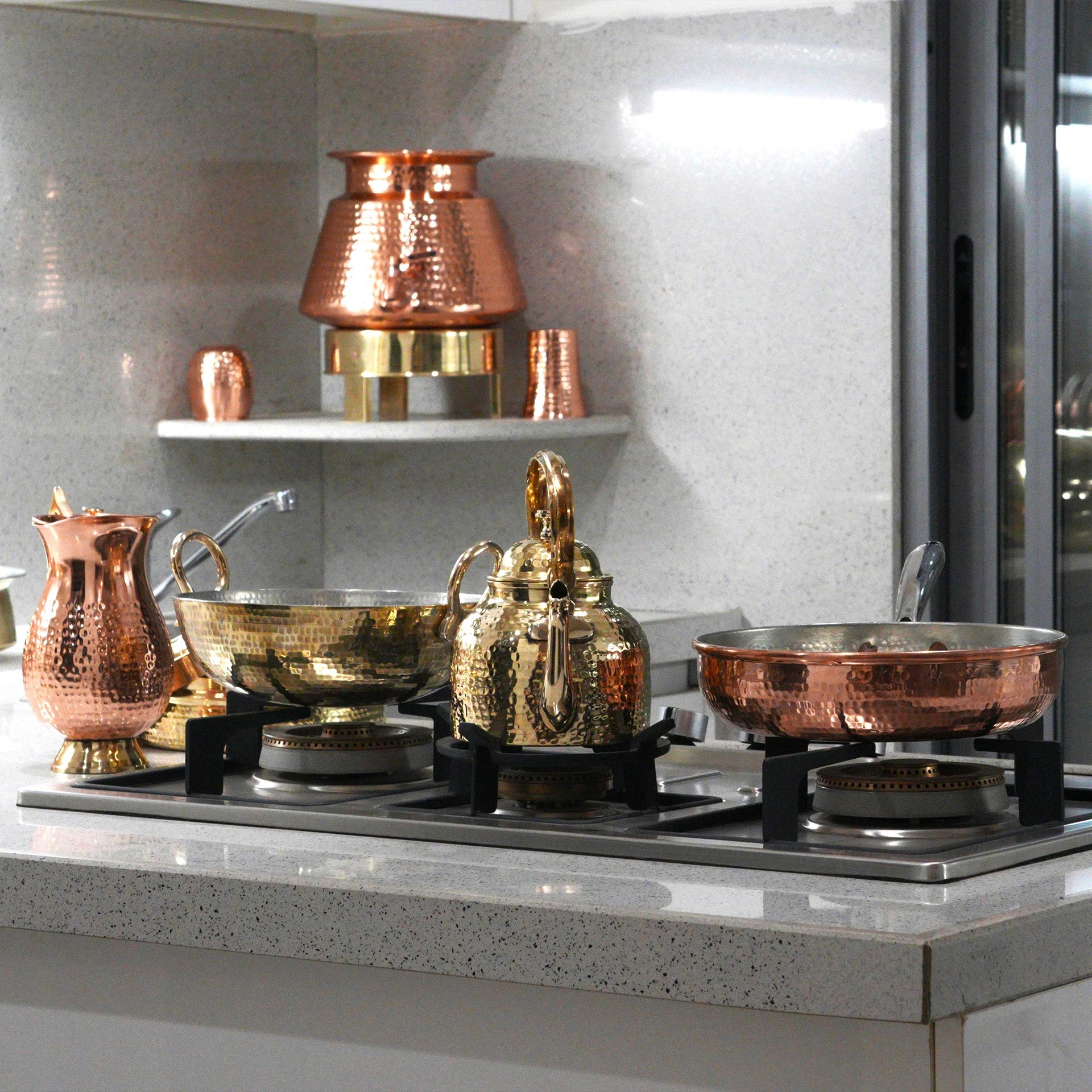 Chutney and masales (spices) design follow same style with variation in background to differentiate. Background colour matches the product. Number of cylinders reduced by colour matching and orientation